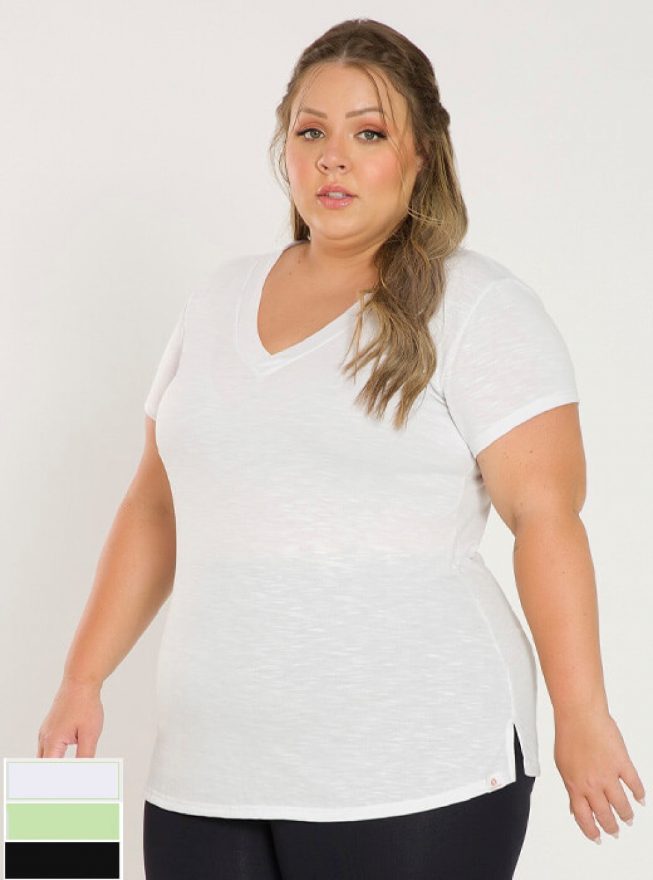 Carregando...Blusa Plus Size, confeccionada em malha flamê, Moda Grande;