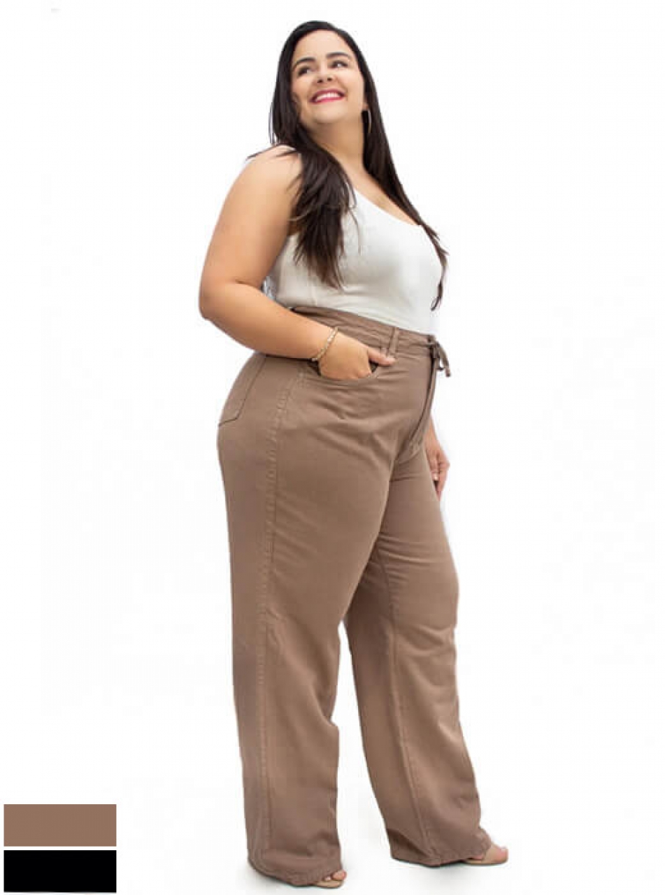 Carregando...Calça Feminina Plus Size **wide leg, em sarja encorpada, nas cores: preto e capuccino;