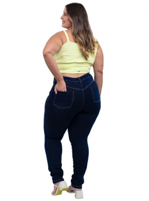 Carregando...Calça Jeans Plus Size, Feminina, modelo cigarrete, frente destroyed;