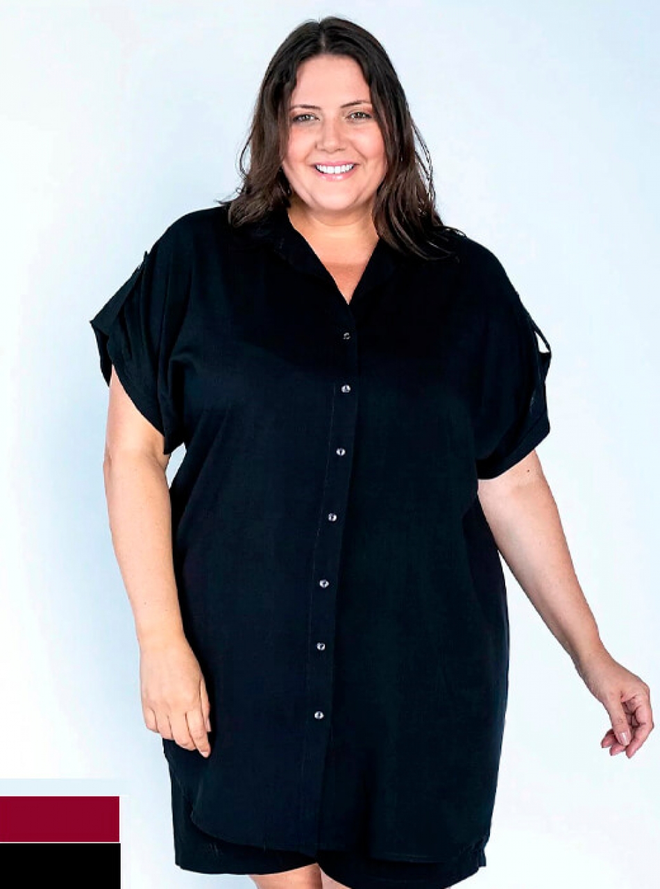Carregando...Camisão Feminino Plus Size, preto, em viscose premium, manga curta;
