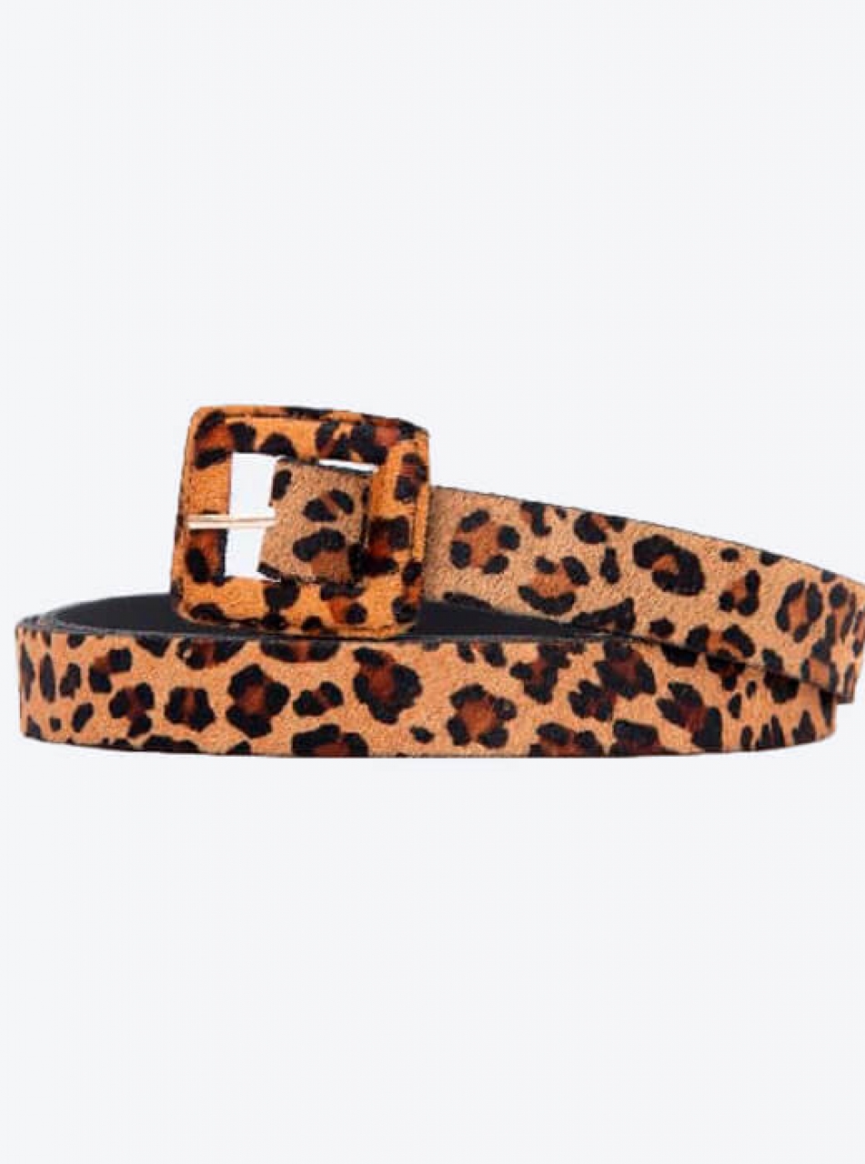 Carregando...Cinto Plus Size, médio, em couro ecológico, forrado em tecido estampado (onça);