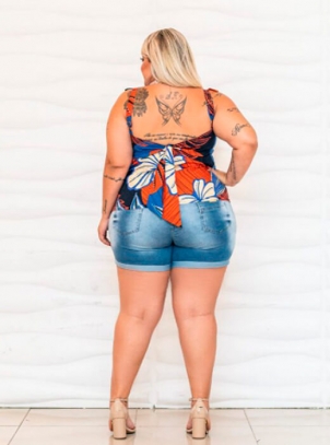 Shorts Jeans Feminino Plus Size, Cintura Alta
