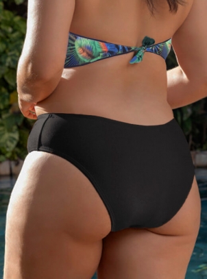 Conjunto Biquíni Plus Size Preto Com Bojo, Tanga Média