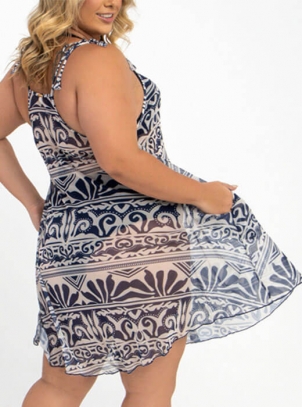 Saída de Praia Plus Size Estampa Marinho