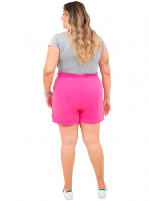 Shorts Feminino Plus Size Rosa Pink Liocel