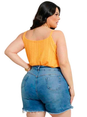 Short Saia Jeans Plus Size Destroyed Barra Desfiada