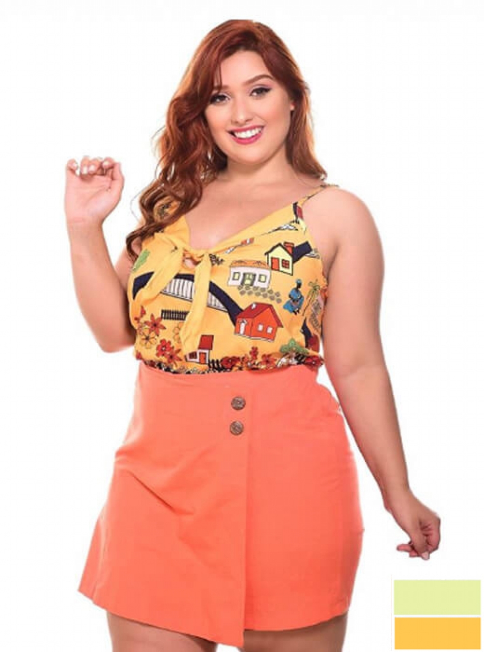 Carregando...Regata Feminin Plus Size, em viscose, estampa mix, floral e paisagem;