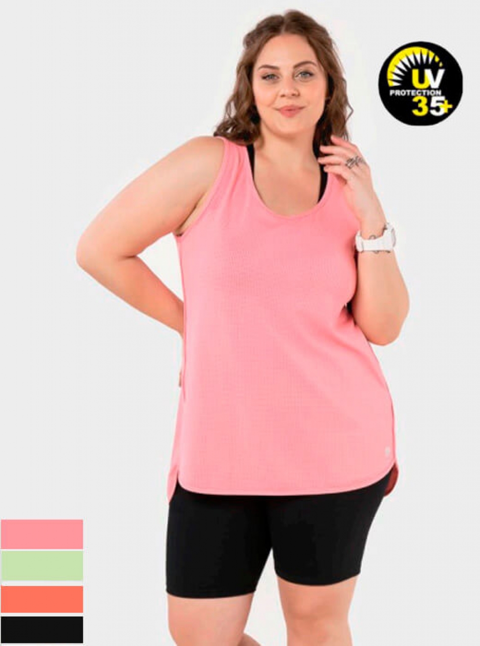 Carregando...Regata Plus Size , em poliamida com elastano com *proteção solar;