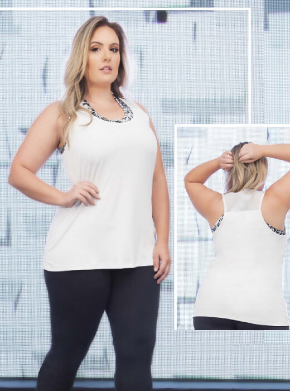 Carregando...Regata Feminina Plus Size, em poliamida, com elastano, com detalhe de tule, moda plus size fitness;