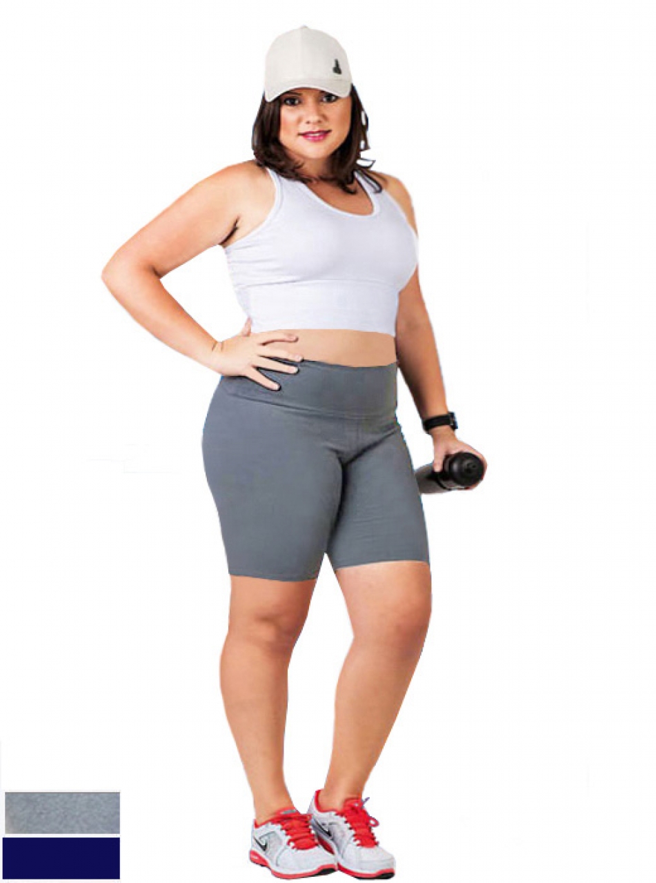 Carregando...Bermuda Plus Size, em poliamida, com elastano, modelo ciclista, cintura alta;
