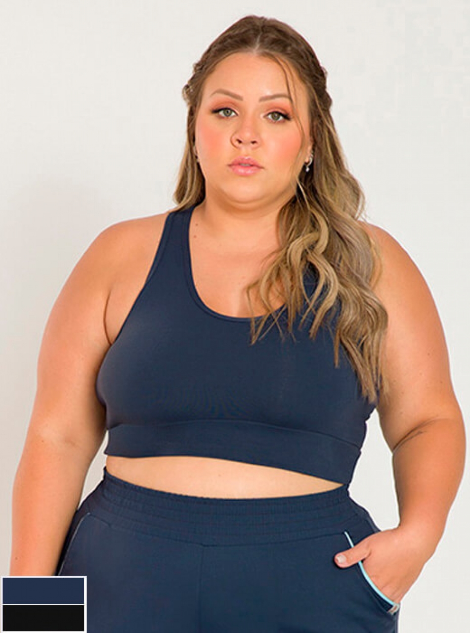 Carregando...Top Plus Size, em poliamida com elastano, sem bojo, cropped;